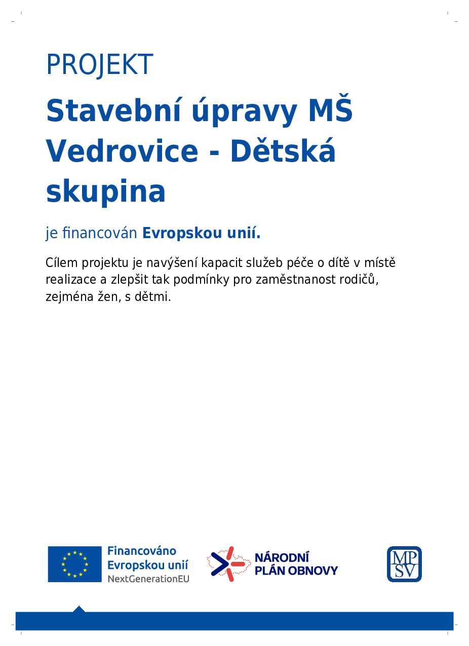 Stavební úpravy MŠ Vedrovice - Dětská skupina